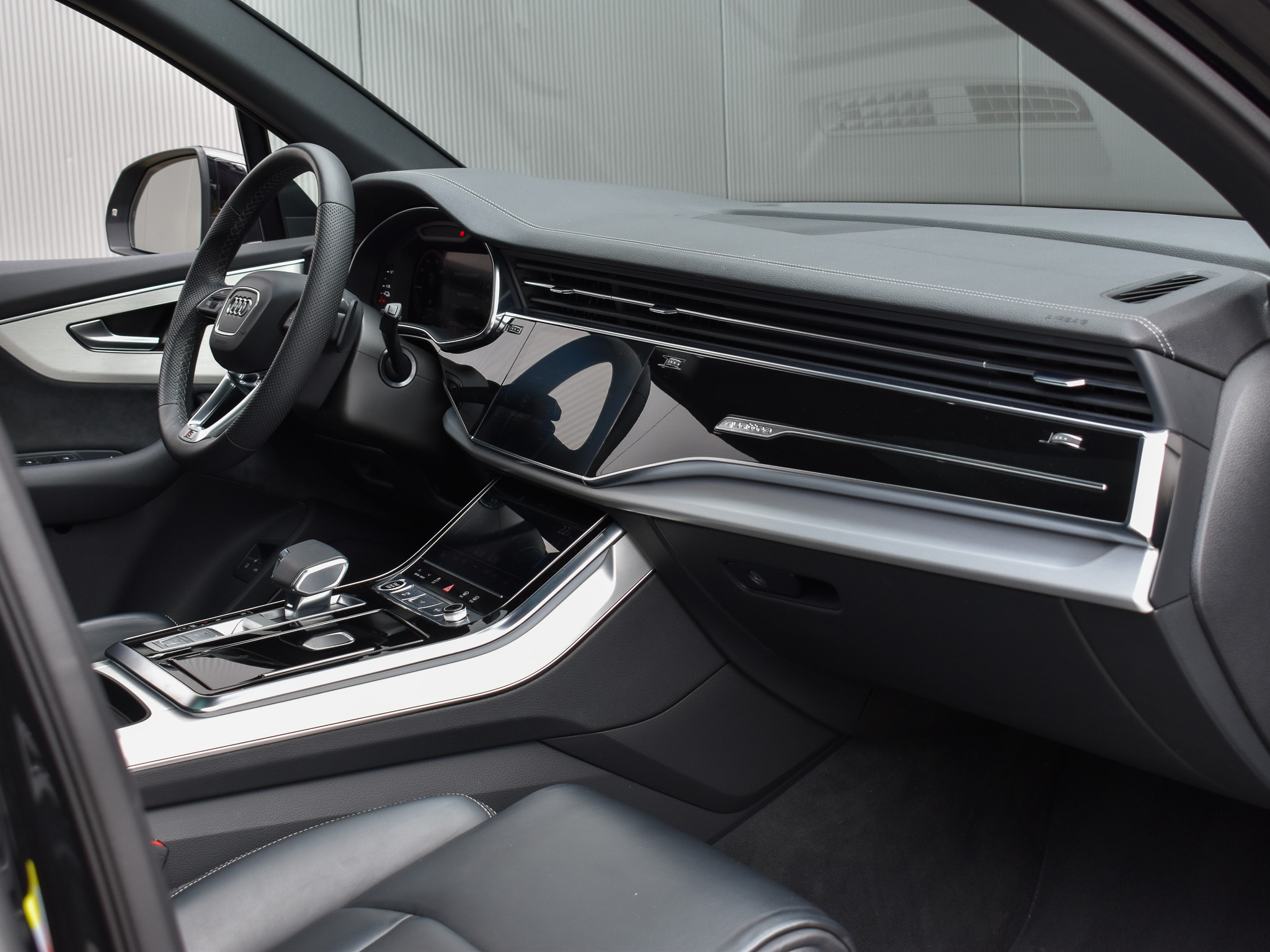 De Audi Q7 55 TFSI e S-line is een indrukwekkende plug-in hybride SUV die luxe, kracht en efficiency moeiteloos combineert. In de kleur Mythos Black metallic straalt deze Q7 pure klasse en sportiviteit uit. De scherpe S-line accenten geven het exterieur een dynamische uitstraling, terwijl het ruime en hoogwaardige interieur comfort op topniveau biedt.